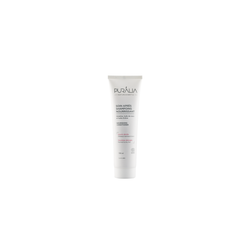 Sans silicone et spécifiquement formulé pour prendre soin des cheveux secs ou normaux, le soin après shampoing nourrissant PURALIA est enrichie en huile de coco