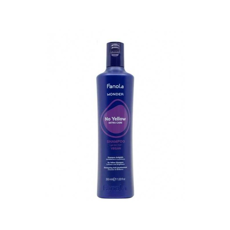 Le shampoing déjaunisseur No Yellow Wonder de Fanola neutralise les reflets jaunes indésirables des cheveux blonds tout en apportant de la douceur et de la brillance.