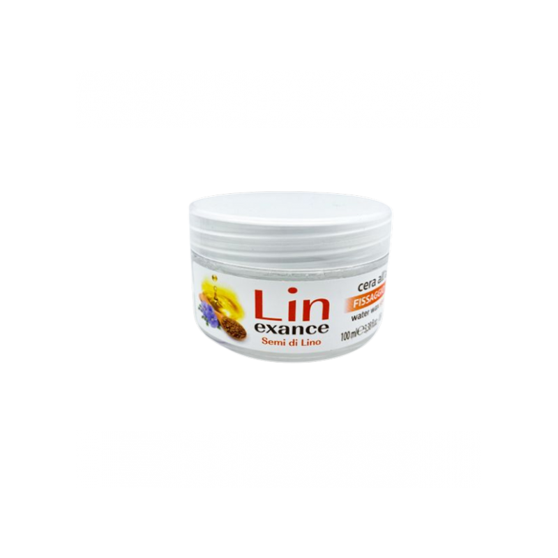 Cire à l'eau LIN exance tenue moyenne pour cheveux à l'huile d'argan et à l'huile de graines de lin.
