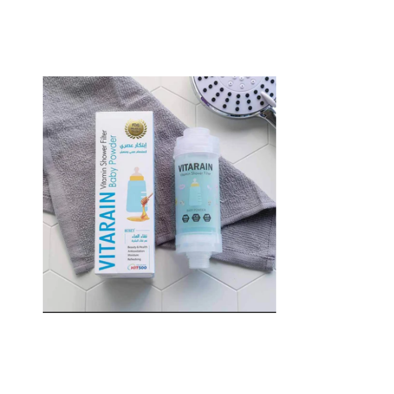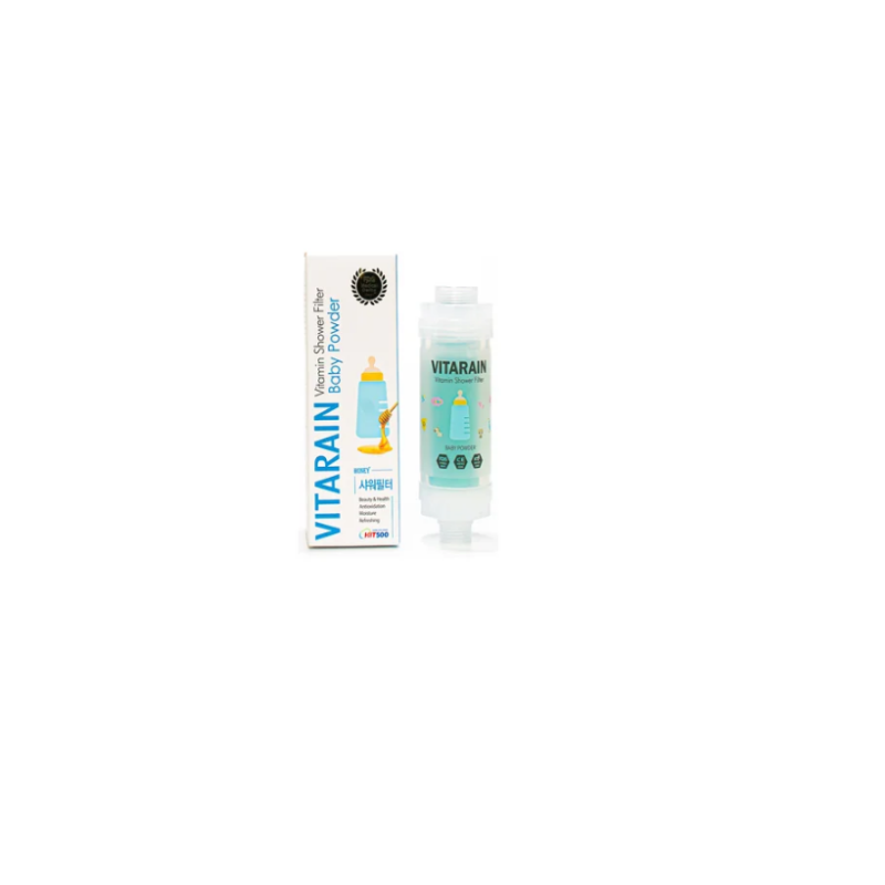 Le filtre de douche Vitarain Baby Powder permet d’éliminer le chlore et les métaux lourds présents dans l’eau du robinet en y laissant un subtil parfum. Il réduit l’agression des cheveux et de la peau causés par une eau trop dure pour une douche purifiée, un corps & des cheveux sublimés!