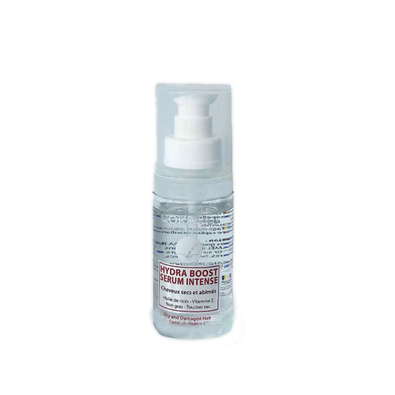 Hydra Boost Sérum Intense de L'Oramel Hair Care est un soin réparateur pour cheveux secs et abîmés. Il complète l'action du shampoing et après-shampoing de la même gamme. Sa formule riche en huile de ricin et en vitamine E reconnues pour leurs vertus réparatrices, protège les cheveux affaiblis et cassants, nourrit en profondeur les pointes fragilisées et prévient l'apparition des fourches.
